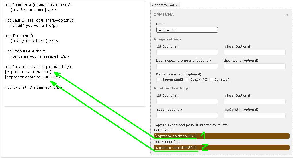 3. После активации Really Simple CAPTCHA, там появилась кнопка «Generate Tag», нажимаем на нее и выбираем из списка — CAPTCHA: